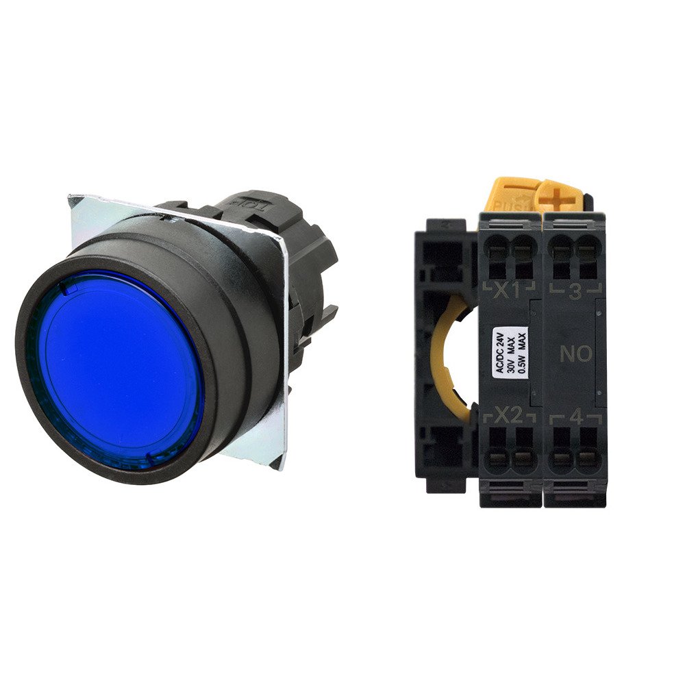 A22NL-BNM-TAA-P100-AC – Pushbutton A22NL Ø22, bezel plastic, FLAT, MOMENTARY, CAP COLOR Transparent BLUE, LED BLUE, 1NO, 24 VDC, push-in terminal