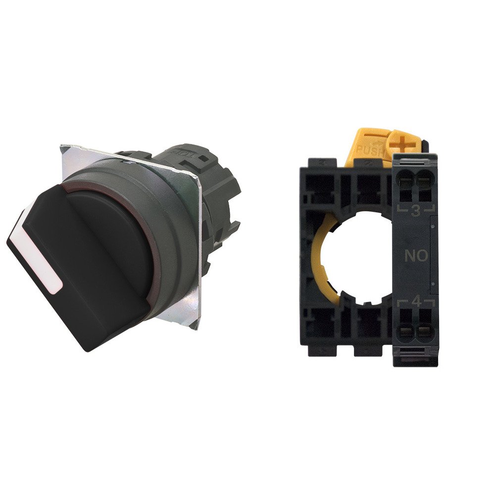 A22NS-2BM-NBA-P100-NN – Selector A22NS Ø22, 2 position, NON-Lighted, bezel PLASTIC, MANUAL, COLOR BLACK, 1NO, push-in terminal