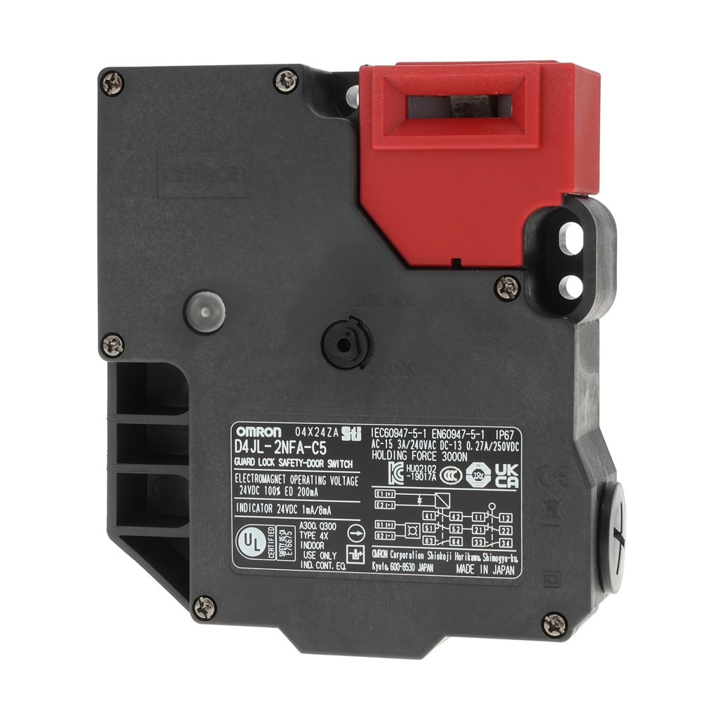 D4JL-2NFA-C5 – Guard lock safety door-switch, D4JL,G1/2, 2NC/1NO + 2NC/1NO, plastic, mechanical lock/24 VDC solenoid release, 24VDC green Indicator, special release key