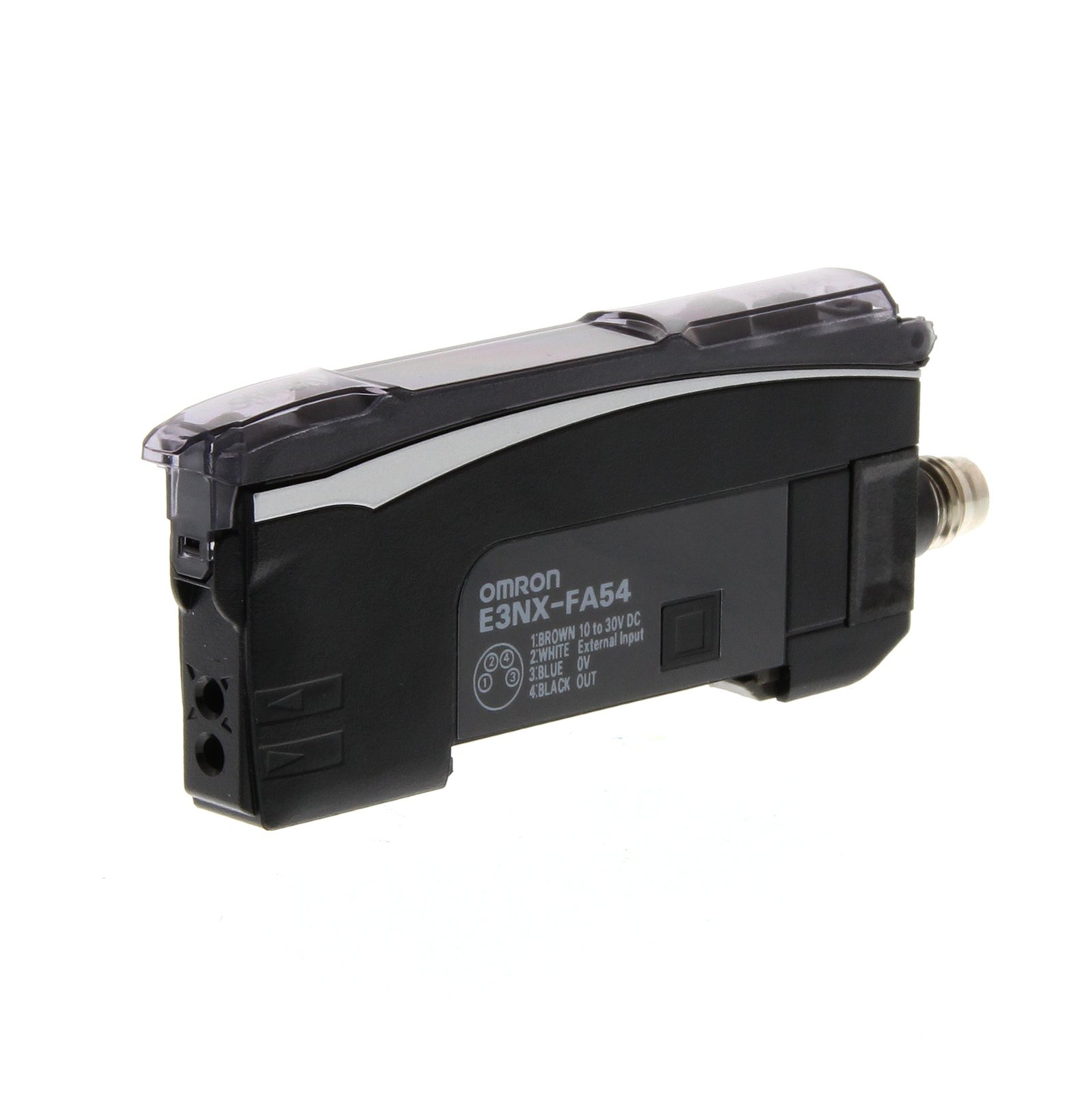 E3NX-FA24 – Fiber amplifier, twin digital display, smart tuning, NPN, single output, external input, M8 connector