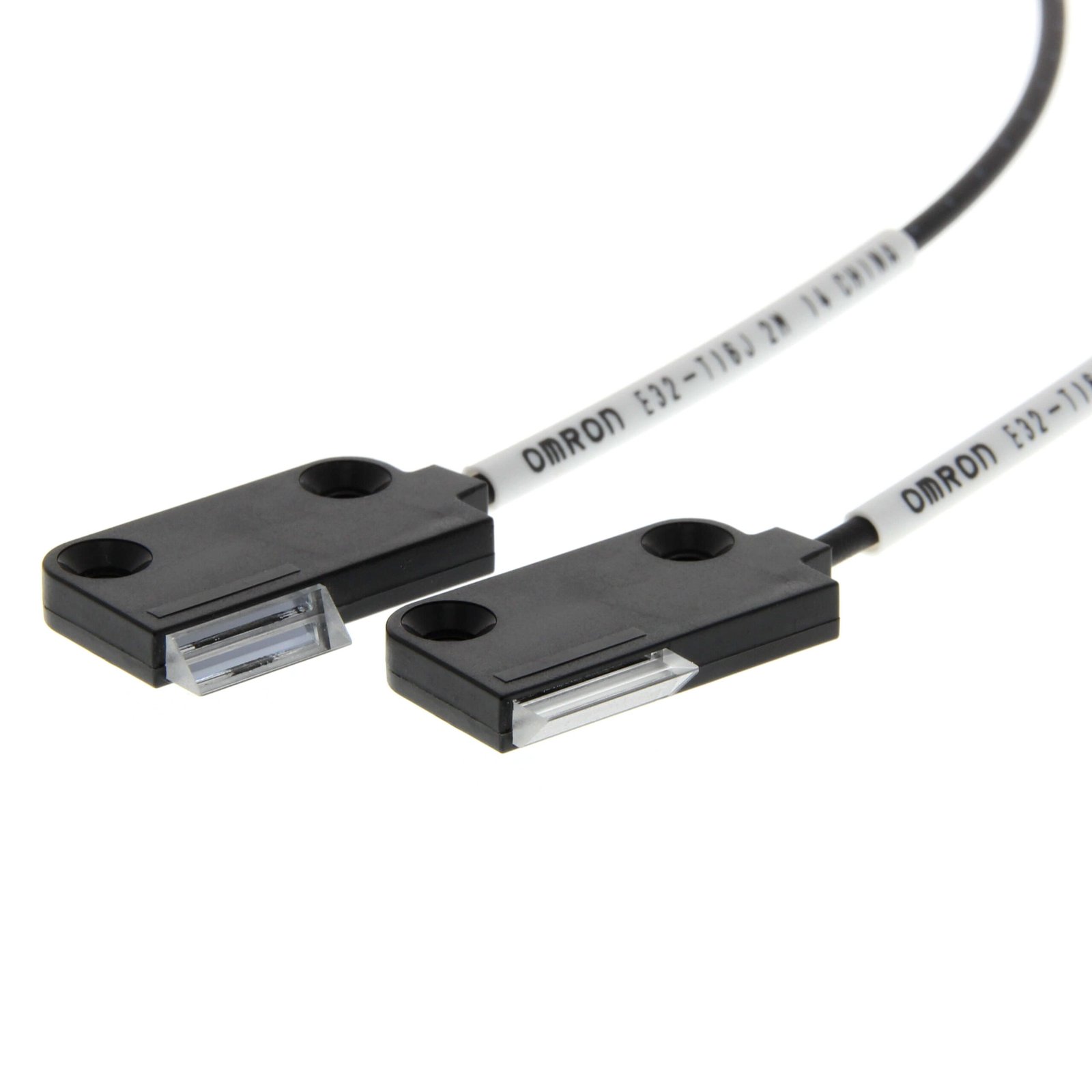 Fiber optic sensor head, through-beam, square, side-view, 11 mm area detection, R10 fiber, 2 m cable