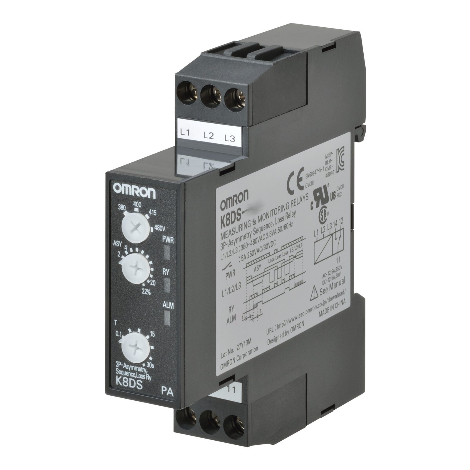 K8DS-PA2 – İzleme rölesi 17.5mm genişlik, 3 faz, gerilim asimetrisi, faz sırası hatası ve faz kaybı, 3 faz 3 kablo, 380 – 480 VAC, 1 SPDT