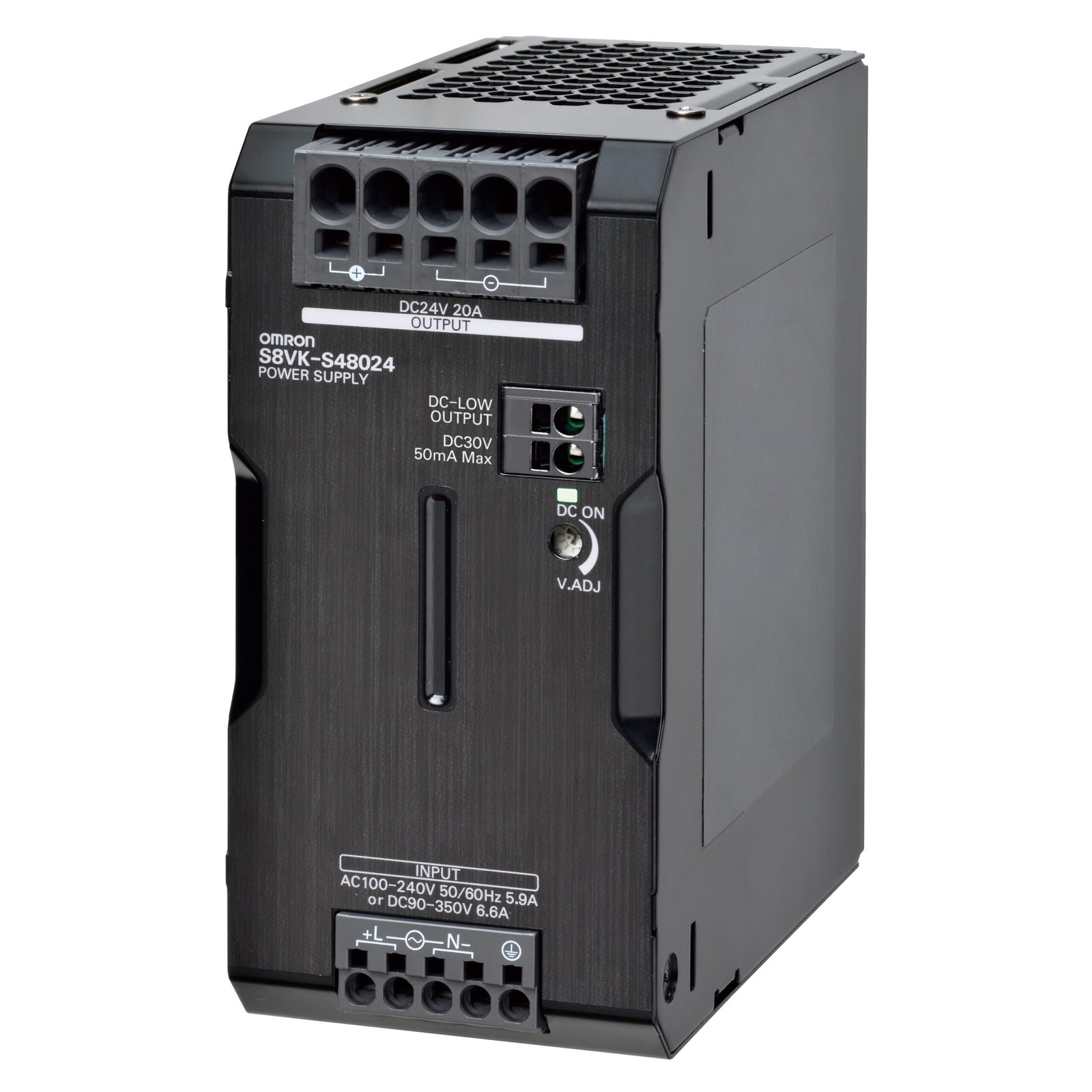 S8VK-S48024 – Kitap tipi güç kaynağı, PRO, 480 W, 24VDC, 20A, DIN ray montaj, Push-in Plus terminal, silikon kaplamalı, düşük gerilim alarm çıkışı, sıvı geçirmez
