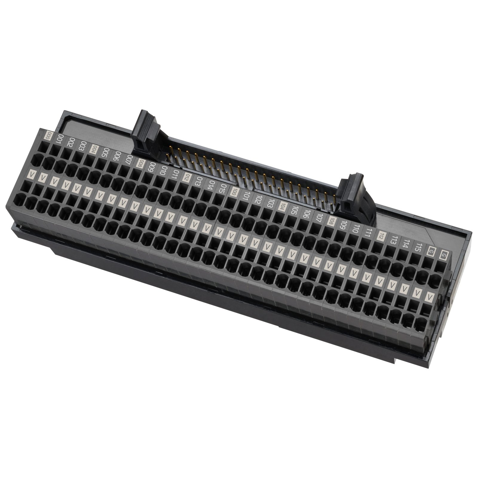 PLC interface wiring system with push-in plus technology and power supply terminal, 40 points MIL connector, Output, Signal: 0.5 A, Power: 7 A, NPN, 30 VDC, DIN rail horizontal and vertical mounting
